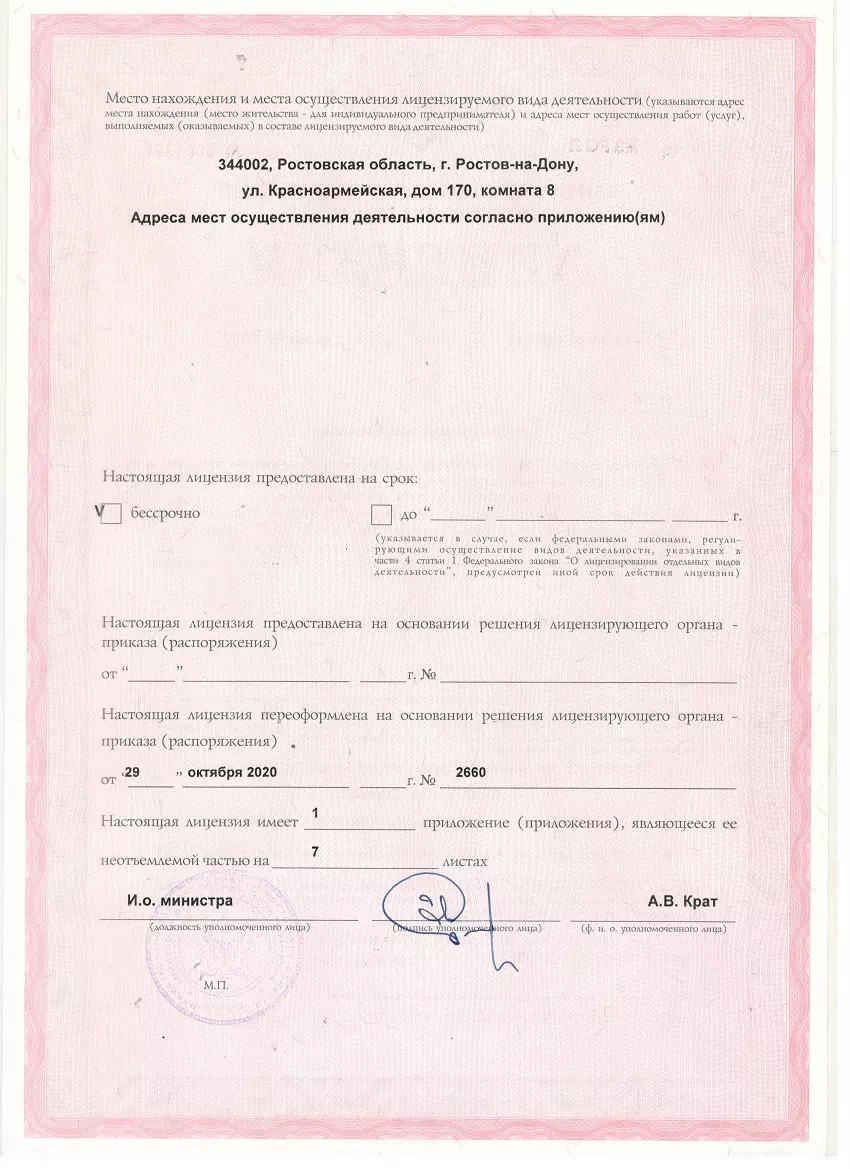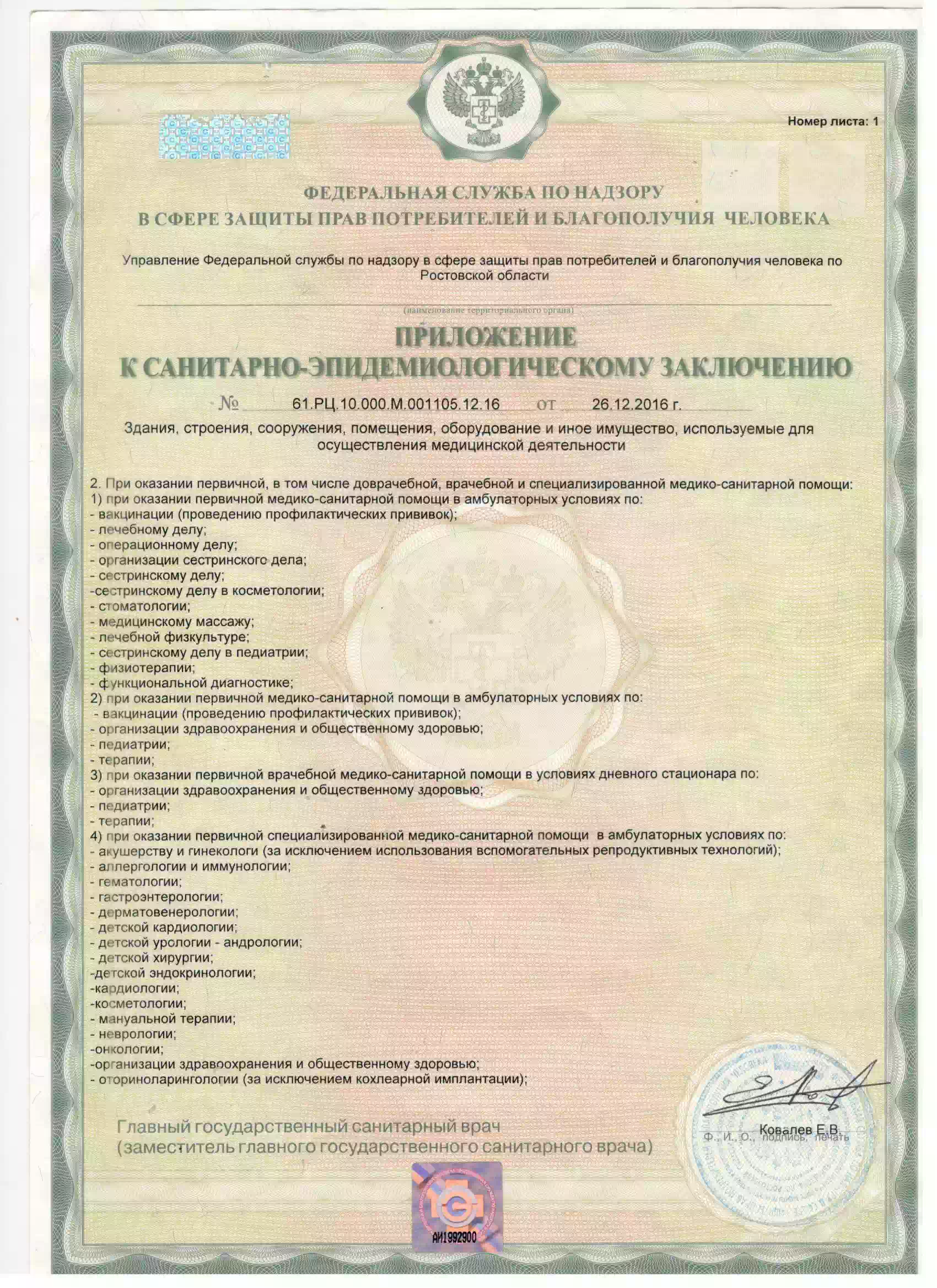 Медицинские услуги оказываются ООО "ЮгЭкоСервис+" по лицензии ЛО-61-01-008143 от 28.12.2021 г.